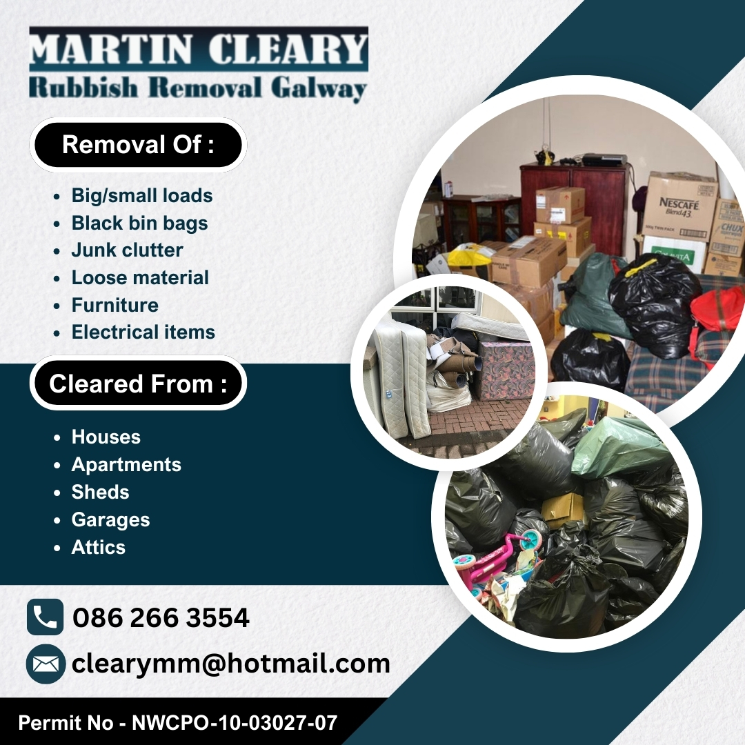 Martin Rubbish Removal Galway offers fast black bag waste removal from homes, attics, sheds & more. Licensed, insured & payment via cash, card or Revolut.